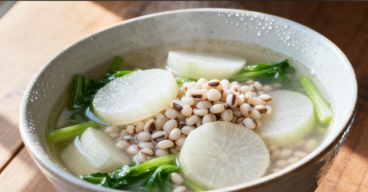 {jz:field.toptypename/}饮食以清淡为主:多吃绿叶蔬菜、白萝卜、薏米、莲子等祛湿润肤的食材;