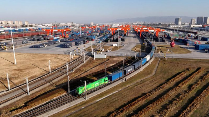中欧班列(西安)驶出西安国际港站。杨玥摄
