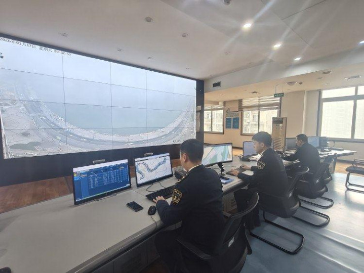 浓雾天气来临,重庆海事局指挥中心立即启动应急响应,“1+12”(重庆海事局指挥中心和十二个海事处设立的监控分中心)智管单元上下协同、左右联动,及时调度12个智管单元,通过CCTV监控、电子巡航等智慧手段实施远程管控,全面感知辖区雾情情况,统一发布航行警告,动态协调,确保全局处置步调一致。