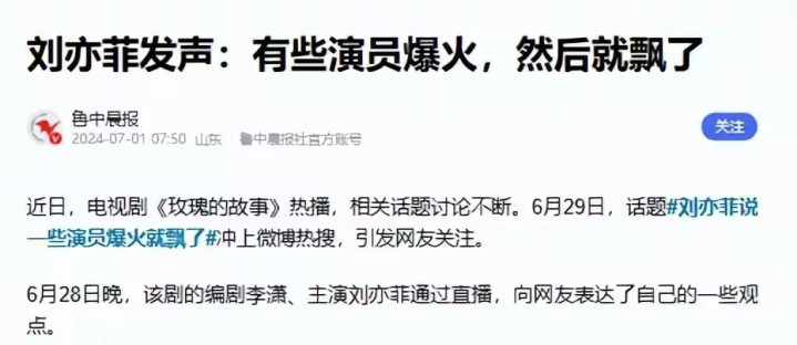 这让我想起刘亦菲也曾说过的话。她说:“演好戏当先要先作念东谈主。”她点出许多演员红太快了,然后就飘了。”当今在看,她说的极少没错,杨幂不就这样是情况吗?
