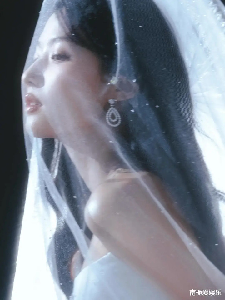 要是说投诚是基底,那么那顶笠帽式头纱则是统统这个词造型的灵魂。它以竹编为骨架,掩饰上薄透的轻纱,并用碎钻勾画详尽,垂落时正值半遮眉眼,营造出一种暧昧而玄妙的疏离感。这种“犹抱琵琶半遮面”的东方留白好意思学,不仅完整契合了卢昱晓淡颜系的缺乏气质,更让她在红毯上宛如一位从传说中走出的“蟾光神女”。