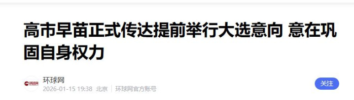 高市早苗正式传达提前举行大选意向 意在巩固自身权力——环球网
